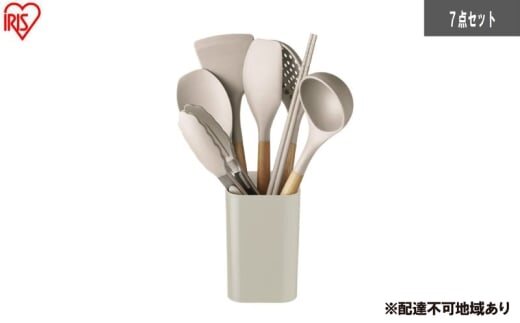 調理器具 キッチンツール7点+スタンドセット KT-7SS グレージュ キッチンツール セット シリコン 吊り下げ おしゃれ 木製 スタンド 収納 7点 スタンド アイリスオーヤマ 調理道具 キッチン フライ返し おたま ヘラ トング