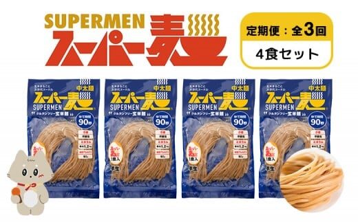 - 【定期便:全3回】スーパー麺 中太麺 4食セット