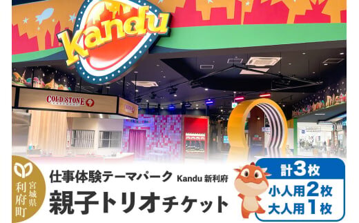 仕事体験テーマパーク Kandu(カンドゥー)新利府 親子トリオチケット(小人用2枚、大人用1枚)【クロネコゆうパケット】