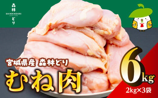 宮城県産森林どり むね肉(2kg×3袋・計6kg) ※沖縄、離島への配送不可