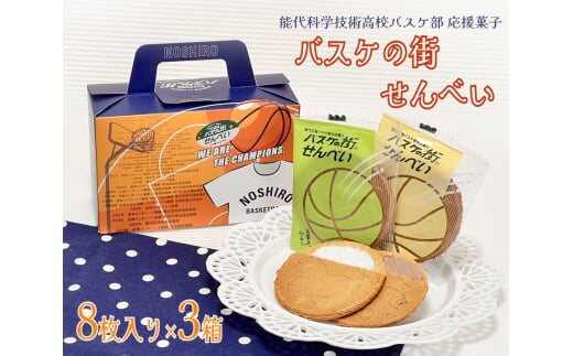 お菓子のセキト バスケの街せんべい 8枚入り×3箱【能代科学技術高校承認BOX入り】