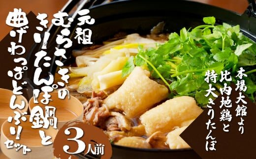 500P1501 元祖むらさきのきりたんぽ鍋セット&曲げわっぱどんぶり3個セット / 鍋 おすすめ 100年フード 専門店 ゴボウ 本場 きりたんぽ 鍋 比内地鶏 比内鶏 郷土 料理 簡単 調理 ひないどり ブランド肉 野菜 ねぎ 芹 セリ まいたけ ごぼう だし キリタンポ なべ 食材 出汁 取り寄せ 東北 秋田 手軽 ご当地 グルメ きりたんぽ鍋 きりたんぽ セット 地鶏 100年フード お取り寄せグルメ