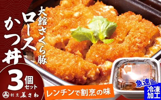 【割烹美さわ】大館さくら豚ロースかつ丼3個セット 60P5709 / 東北 秋田 大館 さくら豚 大館さくら豚 ロースかつどん ロースカツドン ロースカツドン カツ かつどん カツ丼 かつ丼 小分け こわけ レンチン レンジアップ 冷凍 とんかつ 豚カツ 豚かつ SPFポーク 大館市 ロースカツ ロースかつ 便利 手軽 簡単 チンするだけ