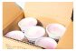 シャーベットに近いさっぱりとした甘さのアイスです。ピンク色のイチゴ味と黄色のバナナ味のピューレを使用しております。