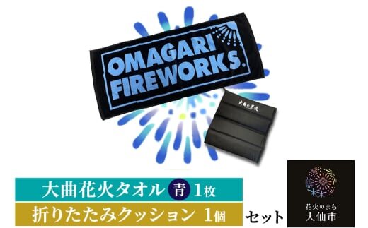大曲花火タオル(青)1枚・折りたたみクッション1個セット