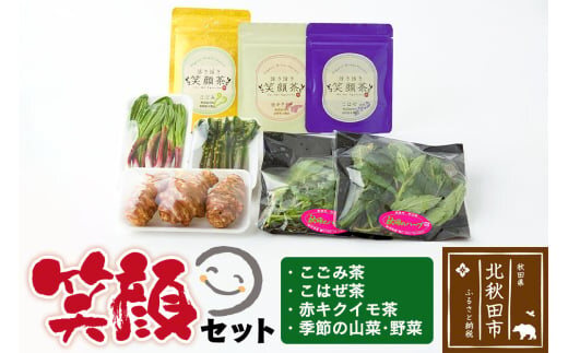 『笑顔セット』季節の山菜・野菜と、こごみ 茶・こはぜ 茶・キクイモ 茶のセット!アントシアニン ポリフェノール ビタミン ミネラル 酵素 が 豊富