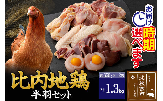 比内地鶏 鶏肉セット(半羽)1.3kg(650g×2袋)お届け時期選べる 1.3キロ 国産 冷凍 鶏肉 鳥肉 とり肉 配送時期選べる