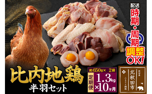 《定期便10ヶ月》 比内地鶏 鶏肉セット(半羽) 1.3kg(650g×2袋)×10回 計13kg 時期選べる お届け周期調整可能 10か月 10ヵ月 10カ月 10ケ月 13キロ 国産 冷凍 鶏肉 鳥肉 とり肉