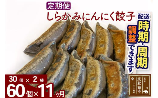 【定期便11ヶ月】しらかみにんにく餃子 60個 (30個×2パック) お届け時期選べる 【冷凍】秋田県産 国内産 豚肉 ぎょうざ ギョウザ ギョーザ 冷凍餃子 生餃子 冷凍食品 中華 惣菜