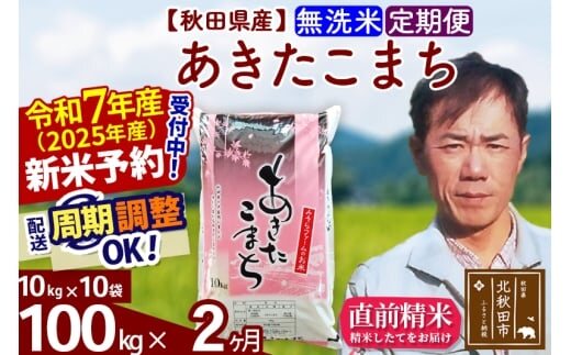 ※令和7年産 新米予約※《定期便2ヶ月》秋田県産 あきたこまち 100kg【無洗米】(10kg袋) 2025年産 お届け時期選べる お届け周期調整可能 隔月に調整OK お米 みそらファーム