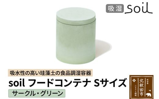 soil フードコンテナ S【サークル/グリーン】日本製 ソイル 珪藻土 吸水性 吸湿性 吸水 調湿 フードストッカー 調味料入れ 丸型 アスベスト不使用