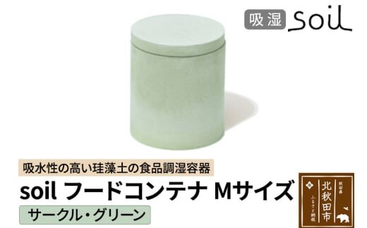 soil フードコンテナ M【サークル/グリーン】日本製 ソイル 珪藻土 吸水性 吸湿性 吸水 調湿 フードストッカー 調味料入れ 丸型 アスベスト不使用