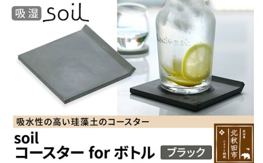 soil コースター for ボトル【ブラック】日本製 ソイル 珪藻土 吸水 コースター シンプル 水滴 四角 角型 アスベスト不使用