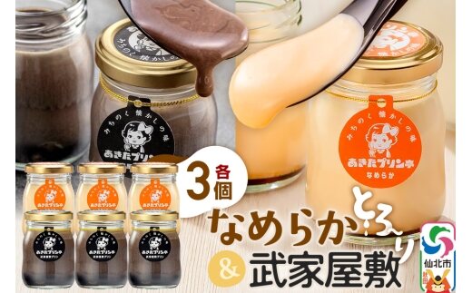 あきたプリン亭 食べ比べ!なめらか&武家屋敷プリンセット 各3個 計6個入り