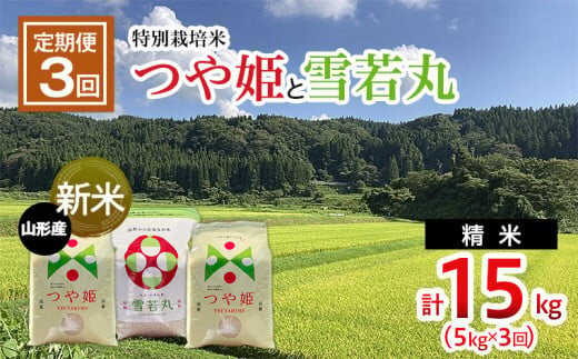 【令和7年産新米】【定期便3回】新米☆特別栽培米 つや姫(5kg×2ヶ月)と雪若丸(5kg×1ヶ月)計15kg FU22-085