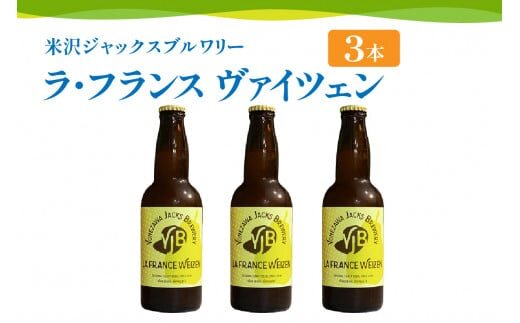 【数量限定】クラフトビール 「ラ・フランス ヴァイツェン 3本セット」 330ml×3本 発泡酒 フルーツビール 地ビール 山形県 米沢市