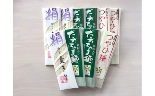 山形県産つや姫の米粉を30%使用した「つやひ麺」、山形県産つや姫と鶴岡市特産のだだちゃ豆を麺に練り込んだ贅沢な逸品「だだちゃま麺」を詰合わせにしてお届けします。