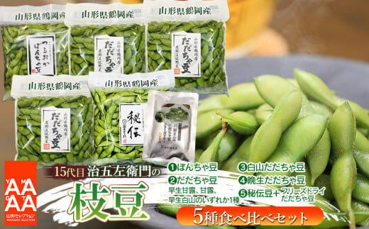【令和7年産先行予約】【5回定期便】 15代目「治五左衛門」のエダマメ5種類(だだちゃ豆3種、ぼんちゃ豆、秘伝豆)食べ比べセット