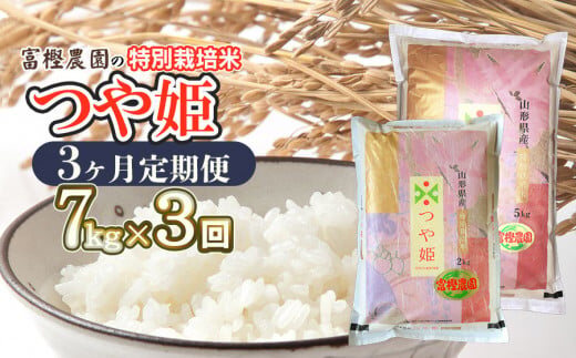 【令和7年産先行予約】【定期便3ヶ月】富樫農園の特別栽培米つや姫 精米7kg(5kg+2kg)×3ヶ月 山形県鶴岡市産 K-747