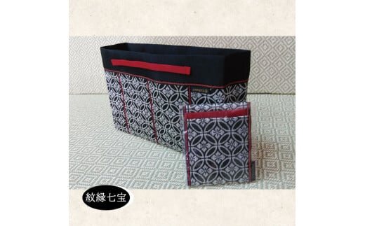 【畳の縁で制作】バッグインバッグと名刺・カードケース 紋縁七宝(黒) SA2730