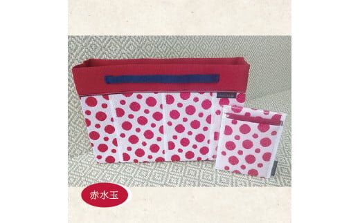 【畳の縁で制作】バッグインバッグと名刺・カードケース 水玉(赤) SA2734