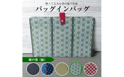 【畳の縁で制作】バッグインバッグ 麻の葉(緑) SA2745