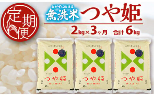 【3回定期便】無洗米 特別栽培米つや姫 2kg×3回(計6kg) SA SC0617