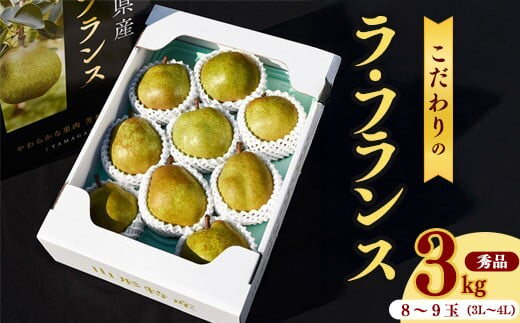 こだわり ラ・フランス 3kg(8玉~9玉) 秀品 3L~4L 《化粧箱入》 農家直送 山形県産【2025年11月頃~12月上旬頃発送予定】 012-B-HK001
