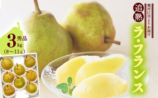 洋梨 「追熟 ラ・フランス」 3kg(8 - 11玉) 秀品 山形セレクション認定品 山形産 【2025年10月末頃から2026年1月頃発送予定】 012-B-MM025