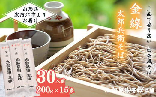 《こだわりの製法》金線太郎兵衛そば 30人前(2人前×15袋) 山形県産挽きぐるみそば粉使用! 015-F-TB002