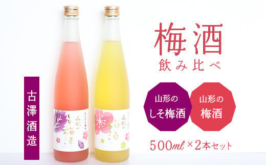 《 梅酒飲み比べ 》 山形の梅酒と山形のしそ梅酒 (500ml×2本)寒河江市産白加賀梅を使用 / 梅酒 飲み比べ しそ梅酒 うめ 白加賀梅 飲み比べセット リキュール 赤しそ 山形 寒河江 0100-E-FR022