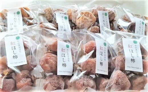 上山市特産『紅柿』の干し柿と、平たねなし柿『庄内柿』の干し柿の2種類を食べくらべできる詰め合わせです。