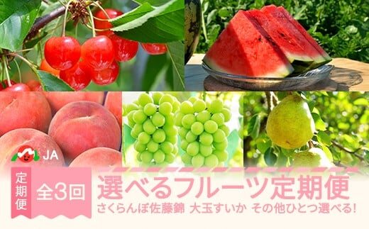 【先行予約】選べるフルーツ定期便 全3回 さくらんぼ 佐藤錦 大玉すいか シャインマスカット 2026年産 令和8年産 ※沖縄・離島への配送不可 ja-ft3cx-b-bu