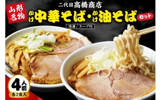 かけ冷凍中華そば2人前・かけ油そば2人前(合計4人前) 二代目高橋商店 山形県東根市 hi092-001
