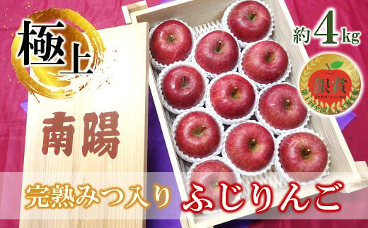 【令和7年産先行予約】 《極上》極み選果 完熟みつ入りふじりんご 約4kg (10~12玉 3~4L) 木箱入り 《令和7年12月中旬~発送》 【全国りんご選手権 銀賞】 『船中農園』 山形県 南陽市 [695]