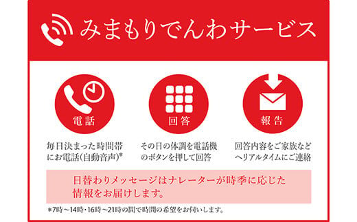 検索キーワード: 山形 南陽市 みまもり サービス 電話 でんわ 体調確認 郵便局 家族をつなぐ 3ヵ月 安心 固定電話