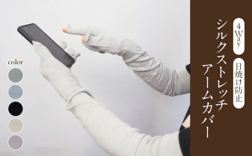 シルクストレッチアームカバー4way【シルバーグレー】 【031-021-SG】