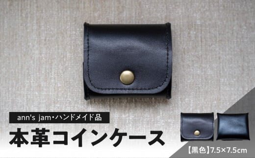 【手造りハンドメイド!ann's jam 本革コインケース(黒色)7.5×7.5cm】