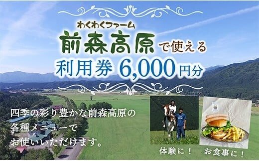 前森高原利用券 6000円分 (1,000円×4枚 500円×4枚) |