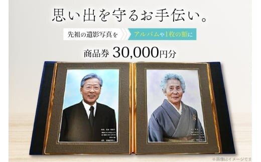 遺影写真を遺影アルバム、または1枚の額縁にまとめるサービスに使用できる商品券1000円×30枚 |