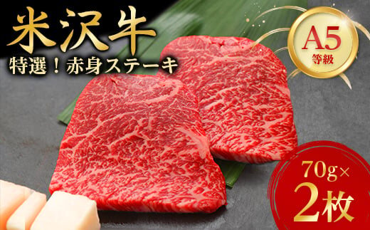 <特選米沢牛A-5>赤身ステーキ 70g×2枚_ ステーキ 牛肉 米沢牛 A5 赤身 赤身ステーキ モモ肉 モモ 牛 肉 にく モモステーキ 国産 焼肉 BBQ アウトドア キャンプ 贈答 ギフト プレゼント 冷凍 惣菜 おかず 送料無料 【1203210】