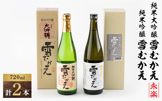 純米大吟醸雪むかえ永楽、純米吟醸雪むかえ720mlの各1本のお届けとなります。
