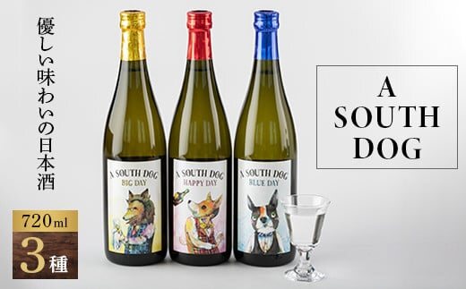 創業100年以上の酒蔵が立ち上げた新ブランド!3タイプの優しい味わいの日本酒です。まるでワインボトルのような可愛いワンちゃんのラベルです BIGDAY! HAPPYDAY! BLUEDAY! 特別な日、ハッピーな日、ちょっと落ち込んだ日、その日の気分やTPOに合わせて楽しめるお酒です。ぜひ、女性にも飲んでいただきたいという杜氏の思いも詰まっています。ハイボールでシュワーッと、ロックですっきりと、ホットでゆる~っと温度を変えてお楽しみください。