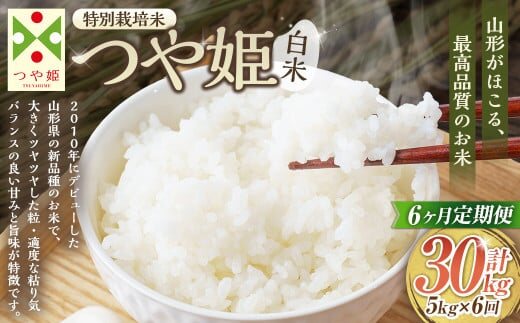 【6ヶ月定期便】【令和7年産新米】〈白米〉 つや姫 5kg×6回(特別栽培米) 山形県産 しらたかのお米 【2025年11月上旬発送開始予定】