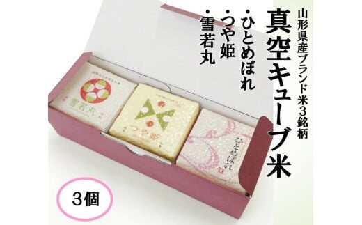 1119R06HI-3 真空キューブ米300g×3個合計900g(令和6年産米)つや姫・雪若丸・ひとめぼれセット(各1個ずつ)