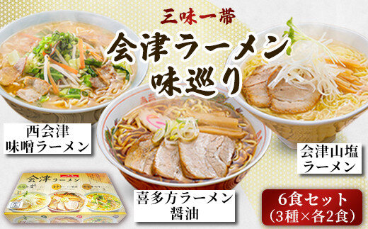 三味一帯 会津ラーメン味巡り6食セット(3種類×2食入り)【喜多方ラーメン醤油/西会津味噌ラーメン/北塩原村会津山塩ラーメン】 【 ふるさと納税 人気 おすすめ ランキング 喜多方ラーメン 西会津味噌ラーメン 会津山塩ラーメン ラーメン 麺 会津山塩 山塩 塩ラーメン 味噌ラーメン 醤油ラーメン お土産 生麺 セット 詰合せ 詰め合わせ 贈答 福島県 北塩原村 送料無料 】 KBX002
