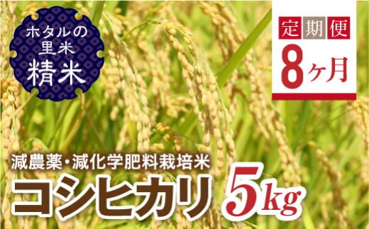 <定期便8ヶ月>【ホタルの里米】環境に配慮し農薬を減らした栽培米 コシヒカリ精米5kg F4D-1850