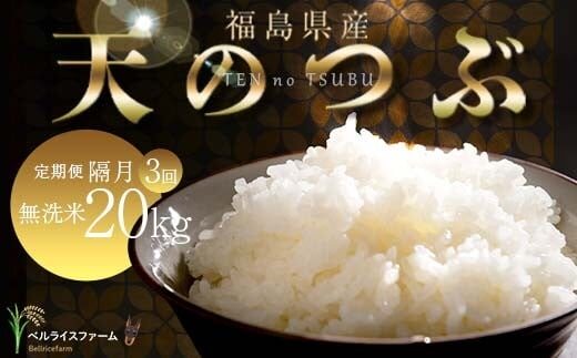 【お米の定期便 2025年11月より隔月3回配送】農家直送 天のつぶ 無洗米 20kg 全3回 F6U-183