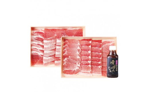 茨城県産いばらき地養豚カタ肉3mmスライス400g、茨城県産いばらき地養豚モモ3mmスライス400g、飯島畜産オリジナルのタレ300ml×1本のセットです。