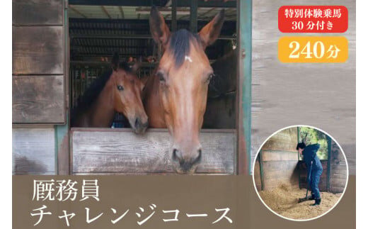EY-2 厩務員チャレンジコース(240分)特別体験乗馬(30分)付き。